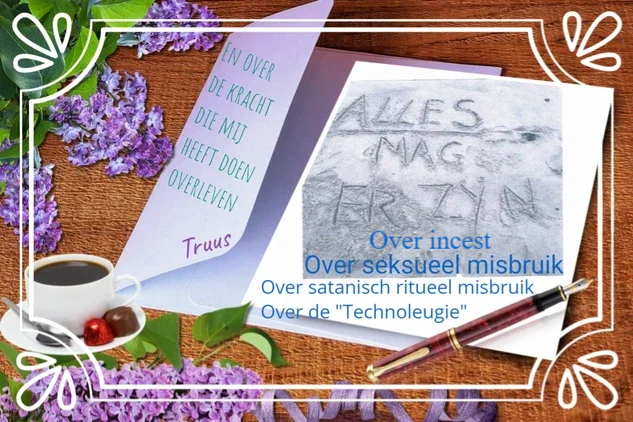 Een klein stukje van mijn levensgeschiedenis. Waarin ik heel veel trauma's heb meegemaakt. Alles mag er zijn. Over incest, over seksueel misbruik, over satanisch ritueel en seksueel misbruik, martelingen en mishandelingen in gods naam. Over de "technoleugie" En over de kracht die mij heeft doen overleven.