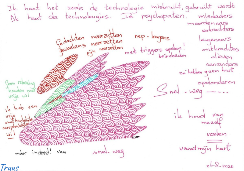 Hier wordt ik mee gemanipuleerd. Door de 'technoleugie'. Dat het mijn schuld is. Zoals alles altijd mijn schuld was. Op mij werd afgeschoven.