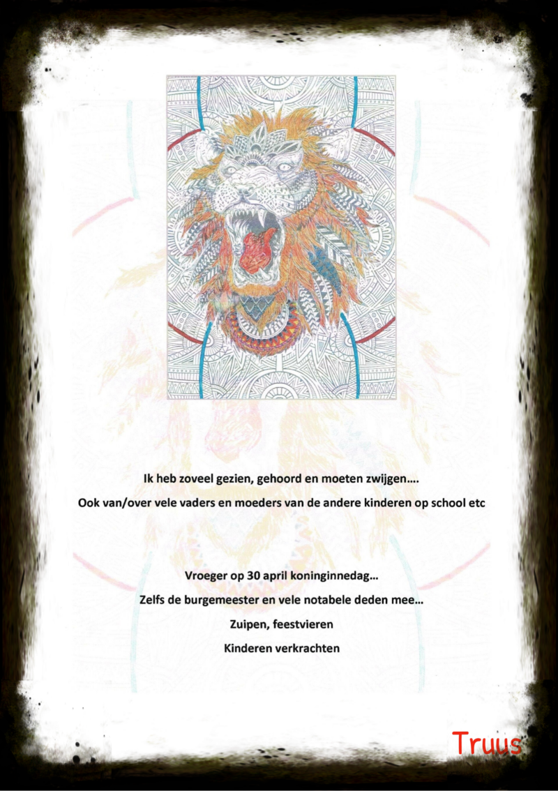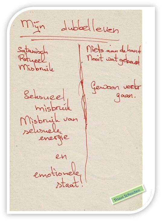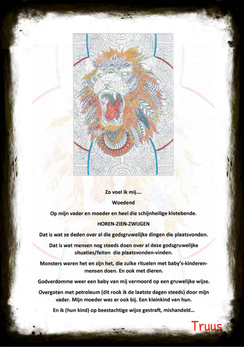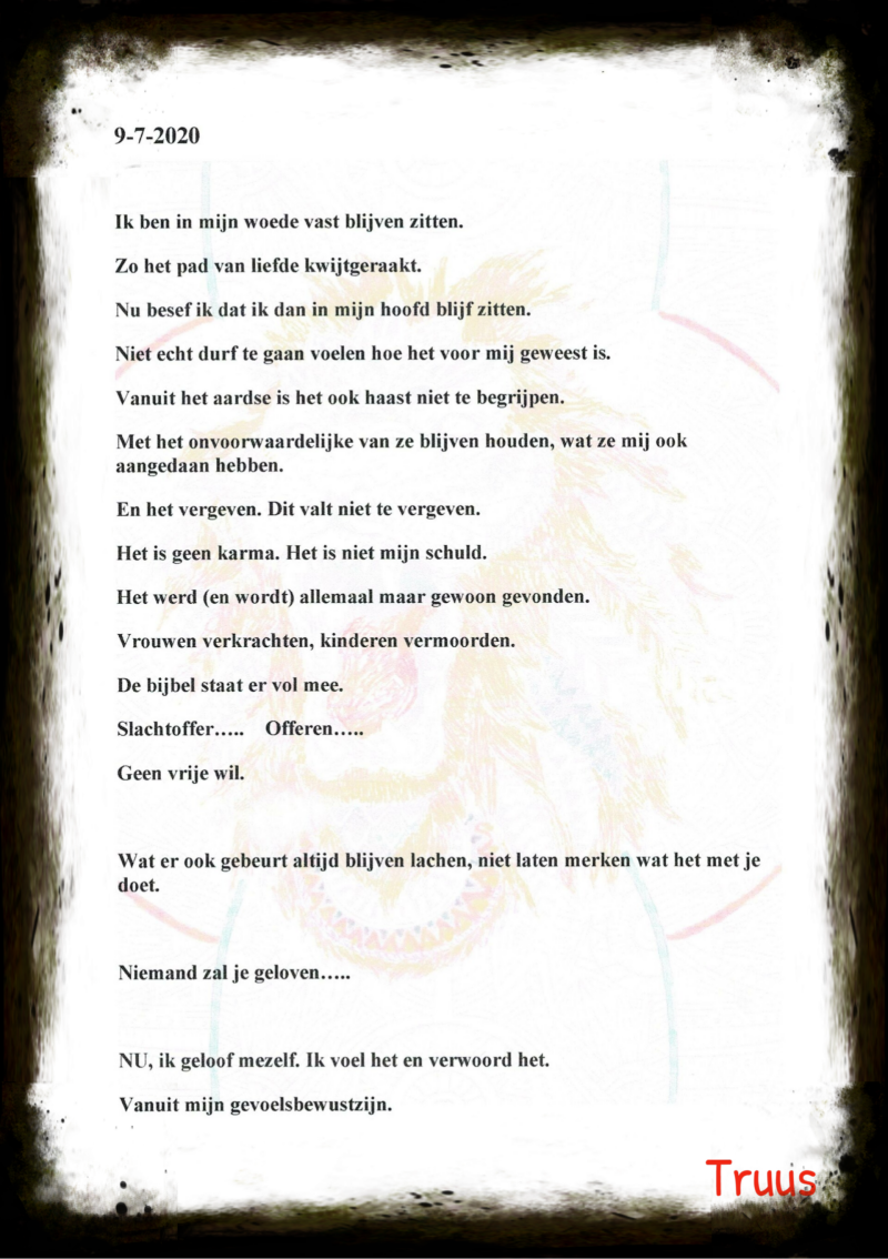Bedankt voor alle sessies met mij gedaan. Al die gruwelijkheden samen met mij herbeleefd. En mij daarin 'geheeld' en gesteund hebt.
